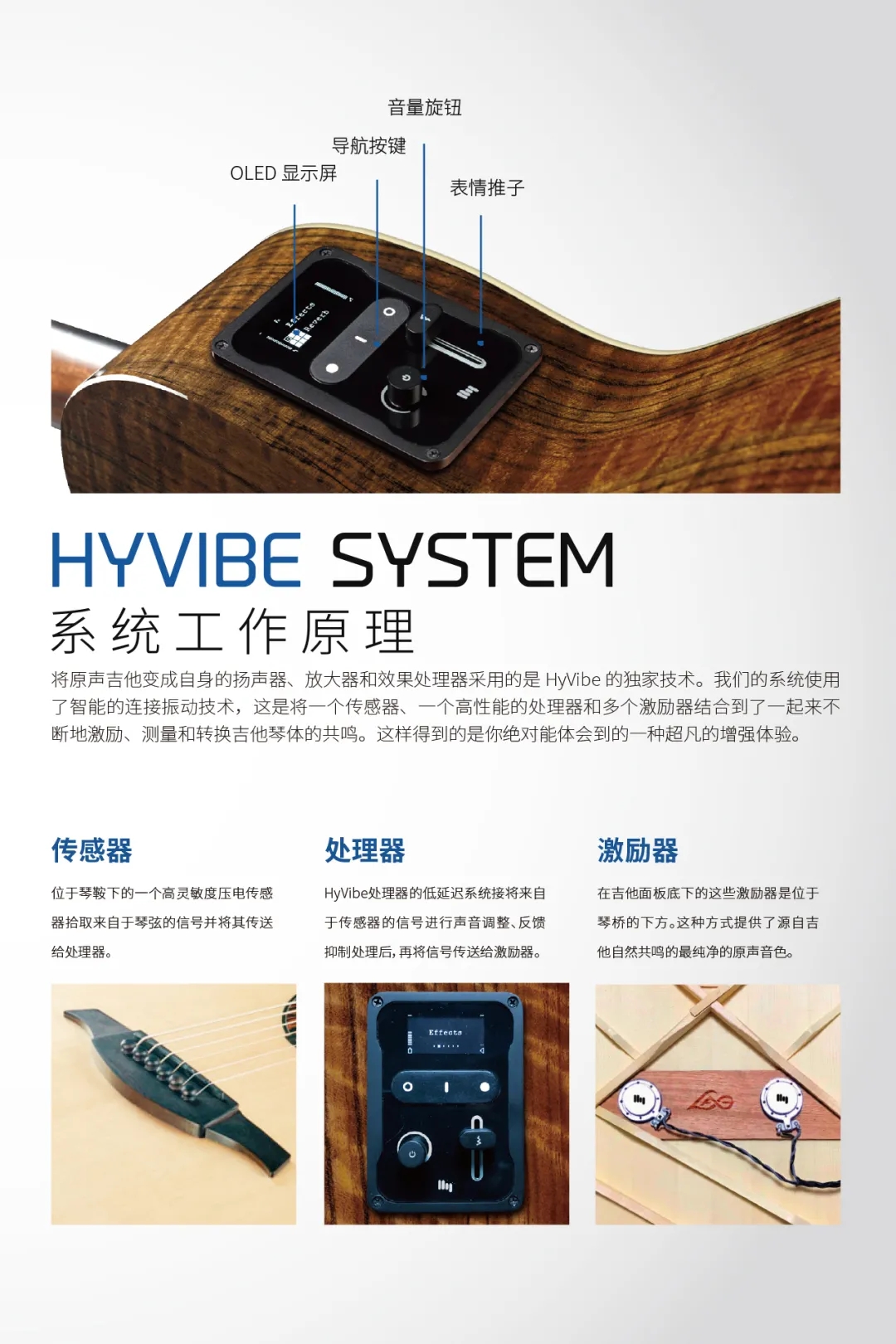 Lag HyVibe 智能吉他为演奏者和他们心爱的乐器都带来了前所未有的变革。是“神奇”的新时代智能原声吉他,它可以放大自己的声音也能产生自己的效果,甚至变成蓝牙扬声器,所有这些操作都不需要使用电缆、踏板或音箱。它不仅能成为音乐爱好者最钟情、最称手的演奏乐器,而且还向他们提供了音乐的无限可能性!