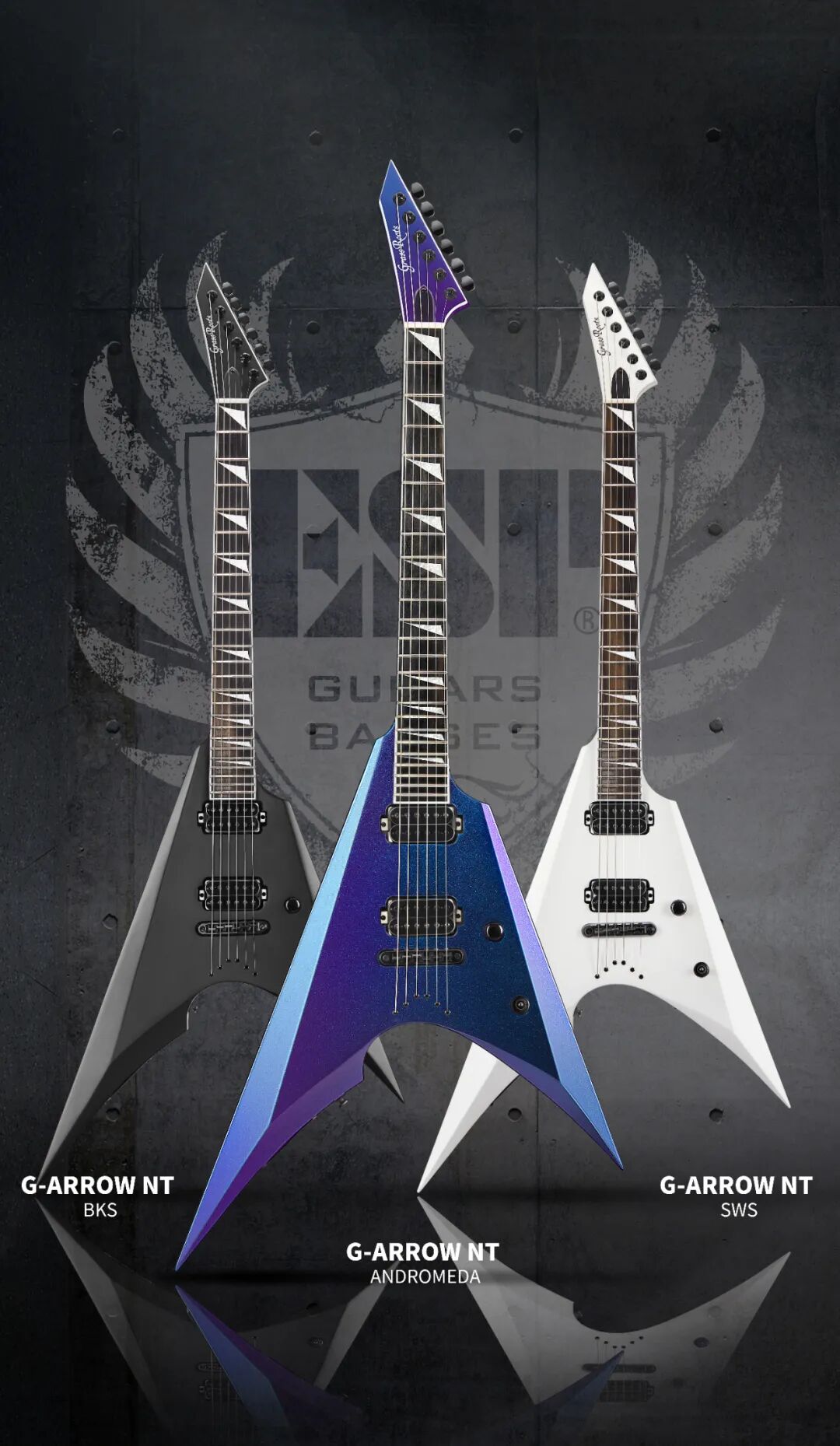 (中国北京旗舰店) 外观设计:经典轮廓,现代灵魂G-ARROW NT 采用经典双切角琴体设计,搭配648mm深插一体式琴颈,提供舒适的高把位演奏体验。三种可选颜色: 深邃的黑 、纯净的白以及 Andromeda 仙女座(偏光),在不同光线下呈现偏光质感,彰显独特个性。