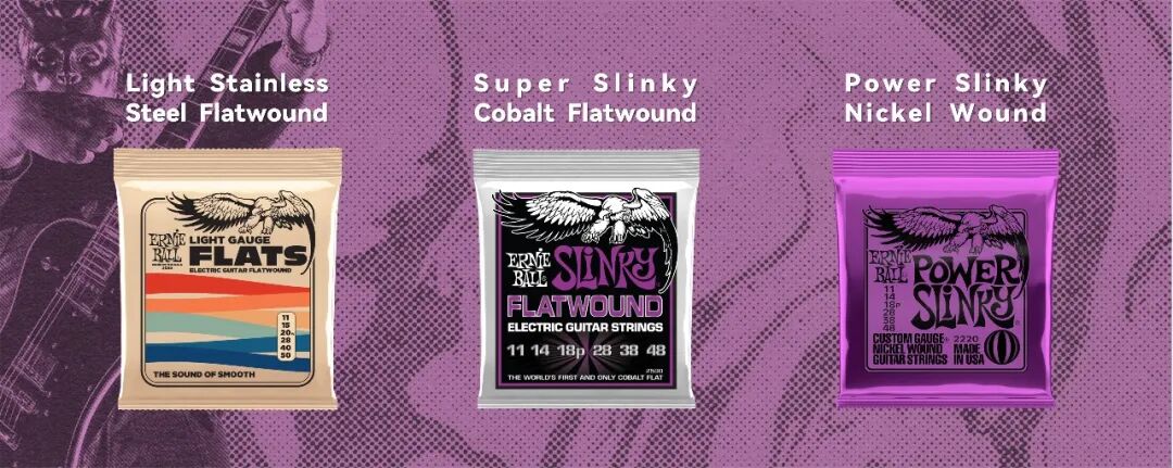 Ernie Ball 三款经典电吉他弦,Light Stainless Steel Flatwound|Super Slinky Cobalt Flatwound|Power Slinky Nickel Wound,到底怎么选?