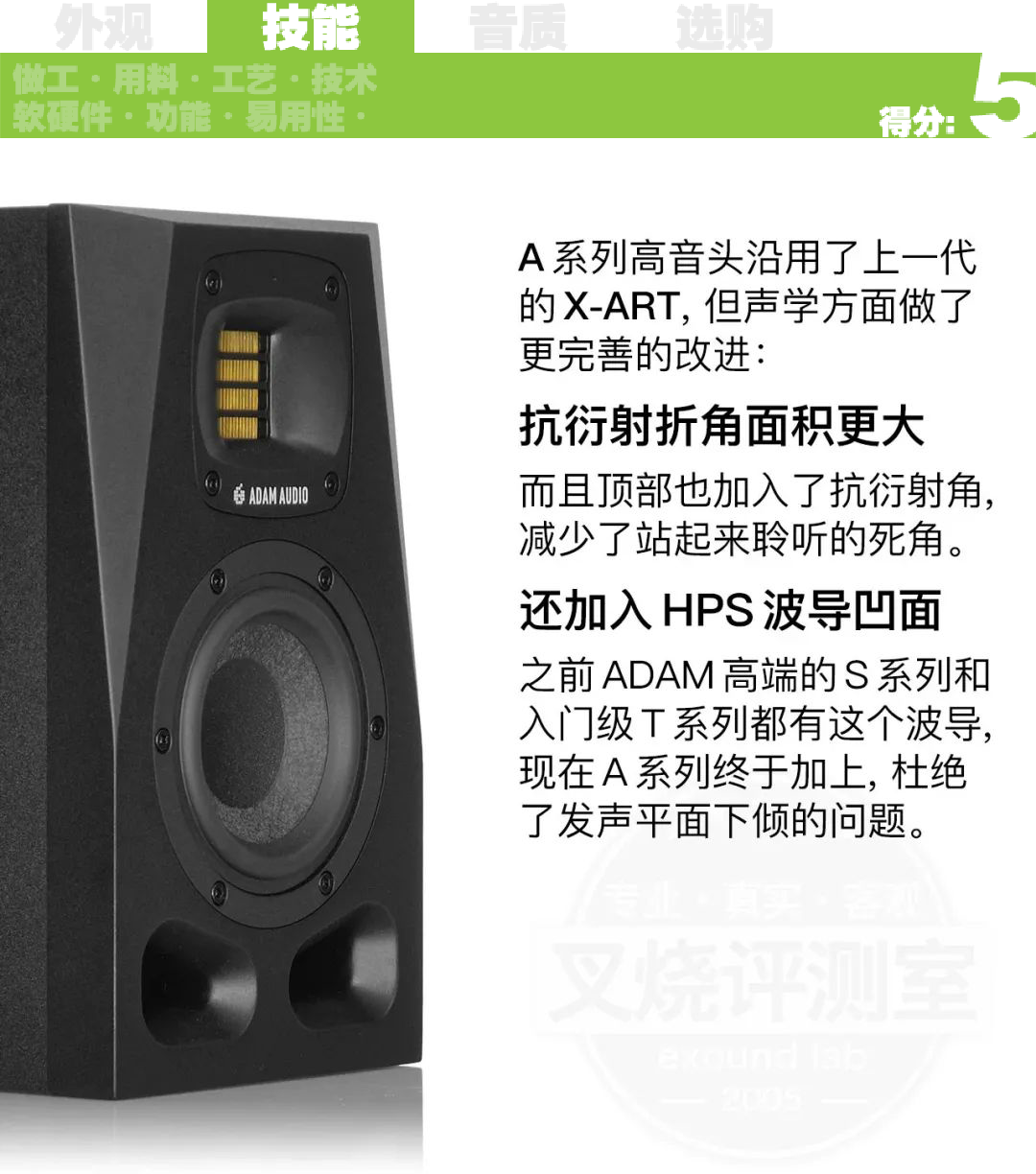 传统 MTM 监听有“双单元低频叠加”的问题,造成上一代 A77X 低频偏厚 (A77X 还有“导管风噪”问题),现在 ADAM 都解决了。