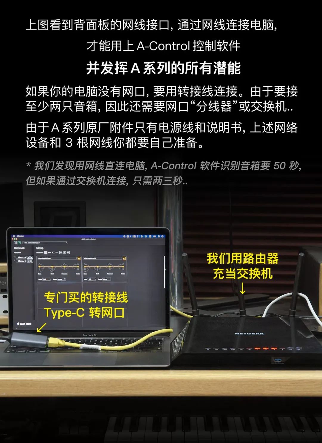 还有一点,如果电脑网口连接音箱,电脑就无法通过 WIFI 上网,需要很复杂的设置。