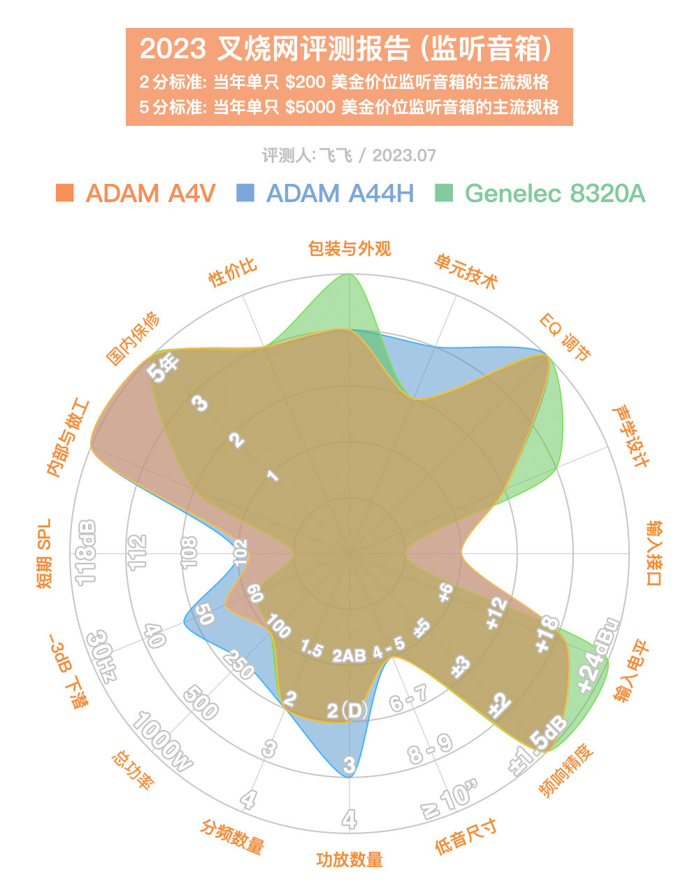 如果你打算入手 5 寸监听,应该考虑 A4V;打算入手 6 寸监听可以考虑 A44H,虽然我们没有听过 A7V,但可以肯定它的下潜会超过同价位的主流 8 寸监听。