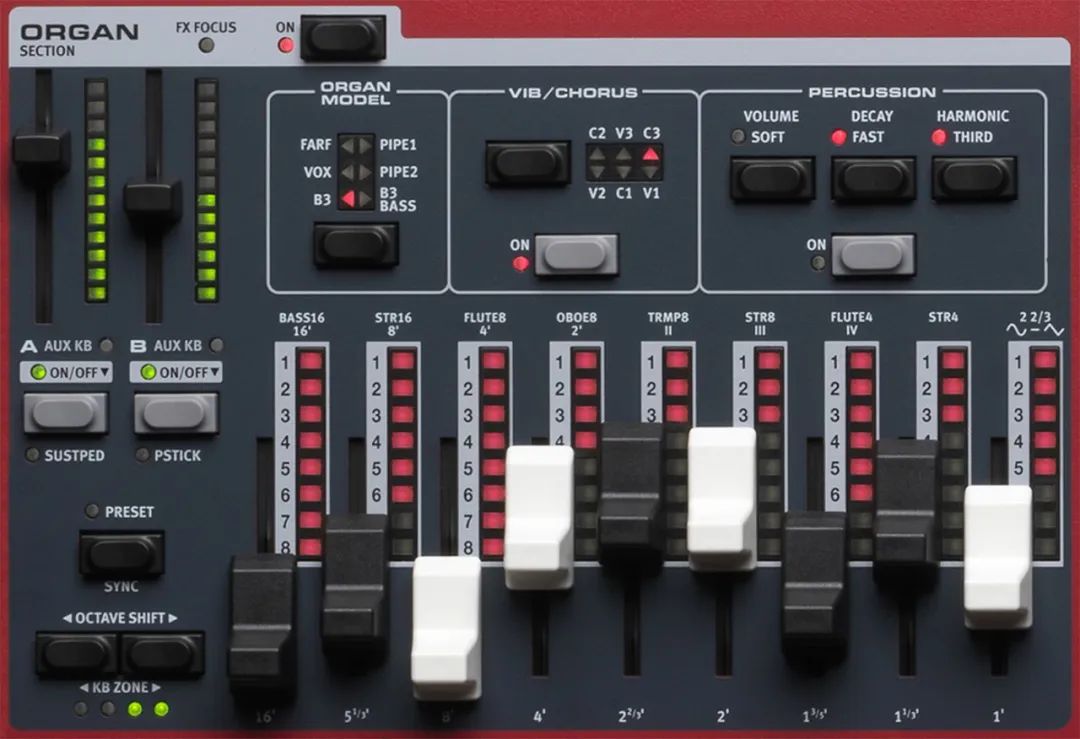 ● 带有正常或接近麦克风位置的 122 型复古旋转扬声器 Organ 部分包含我们屡获殊荣的 B3 Tonewheel、B3 Bass、经典 Vox 和 Farfisa 模拟以及两个管风琴模型。所有 Stage 4 型号都配备了我们新的物理拉杆和 LED 指示灯,以获得最佳的动手体验和概览。