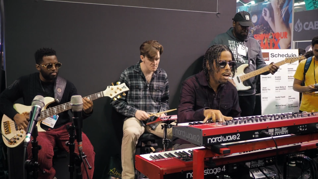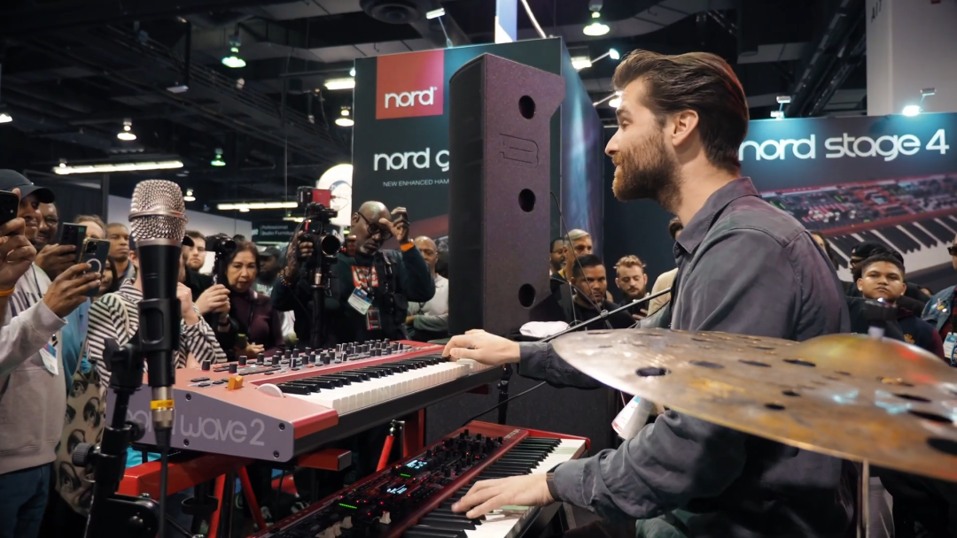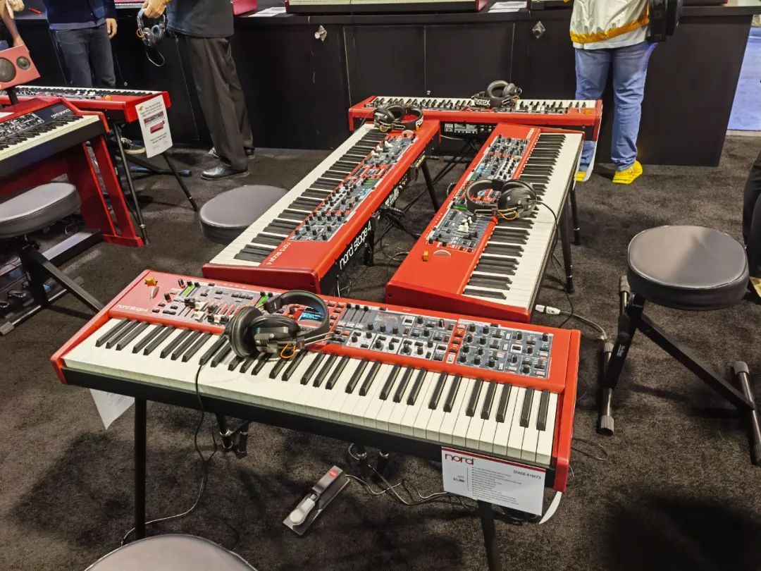 在加利福尼亚州阿纳海姆 2024 年 NAMM Show 的 Nord 展位上著名键盘手和艺术家们进行了精彩的现场表演。