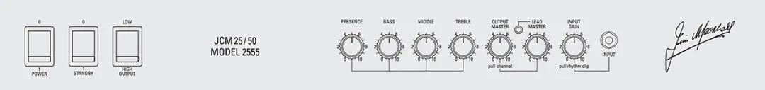 复刻版的全电子管银色庆典2555X箱头拥有银色外皮外观和镀铬控制面板。原始版2555箱头设计基于JCM800 2203和2204 ,并且是第一款使用五级管/三极管开关的Marshall产品,这样可以选择输出功率。这一切特色被2555X忠实再现。此外2555X箱头的前级电路有三个增益“模式“ :clean“干琴模式 ”Rhythm Clip“节奏模式,以及可脚踏开关控制的主音模式。
