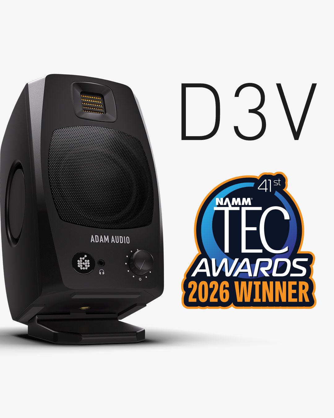 ADAM Audio 荣幸宣布,D3V 桌面监听音箱在2026年接连斩获两大行业顶尖奖项:Sound On Sound 年度大奖 与 TEC Awards 技术卓越与创新奖,均被评为 “最佳工作室监听音箱”!