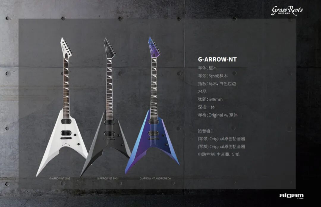 (中国北京旗舰店) 外观设计:经典轮廓,现代灵魂G-ARROW NT 采用经典双切角琴体设计,搭配648mm深插一体式琴颈,提供舒适的高把位演奏体验。三种可选颜色: 深邃的黑 、纯净的白以及 Andromeda 仙女座(偏光),在不同光线下呈现偏光质感,彰显独特个性。