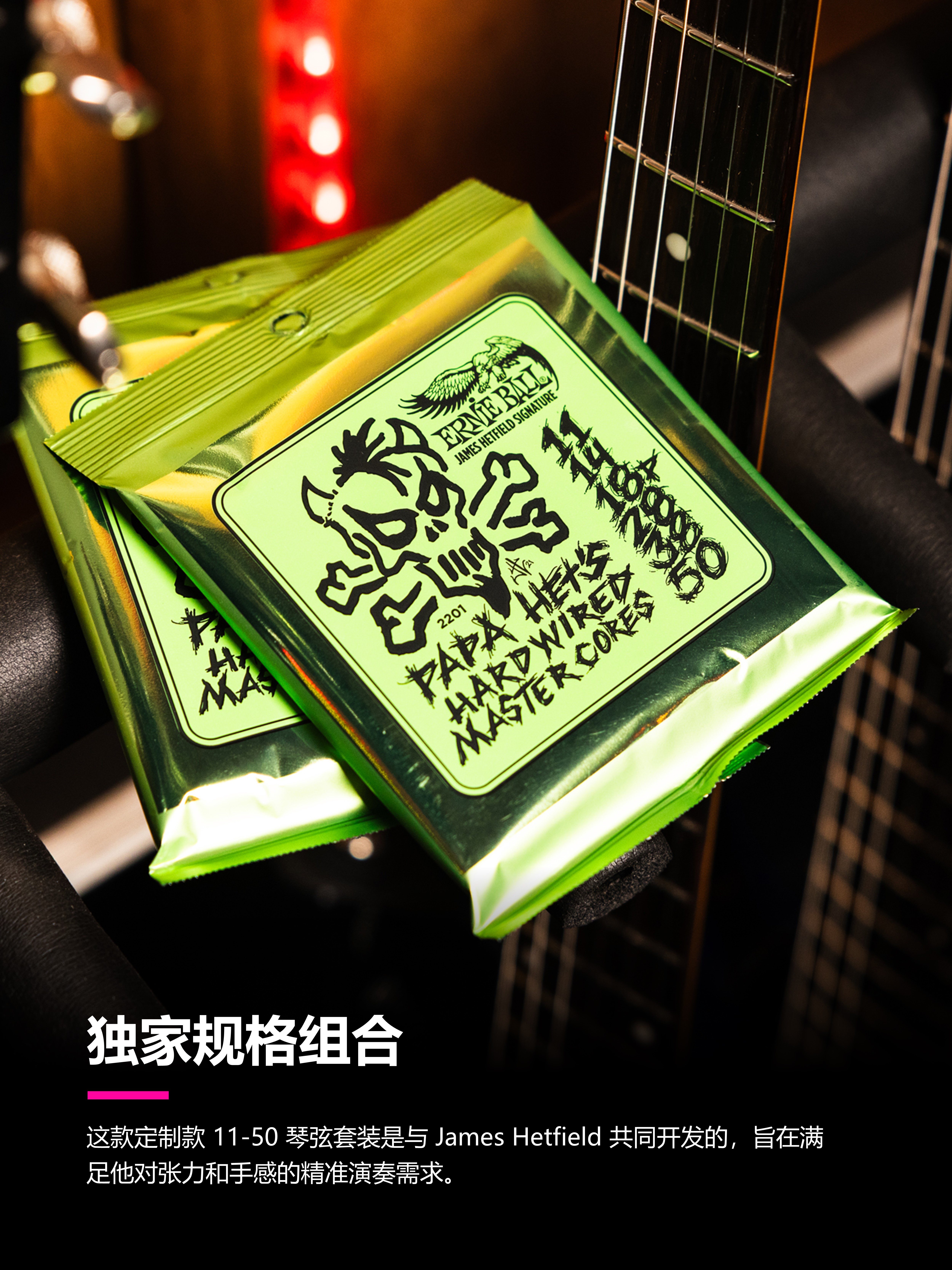 Papa Het's Hardwired Master Cores Signature Strings 如果你是玩重型、弹节奏、死磕下拨的吉他手,你一定认识他:James Hetfield,Metallica 的绝对核心,Riff 工厂的缔造者,全球无数金属党心中的 Papa Het!