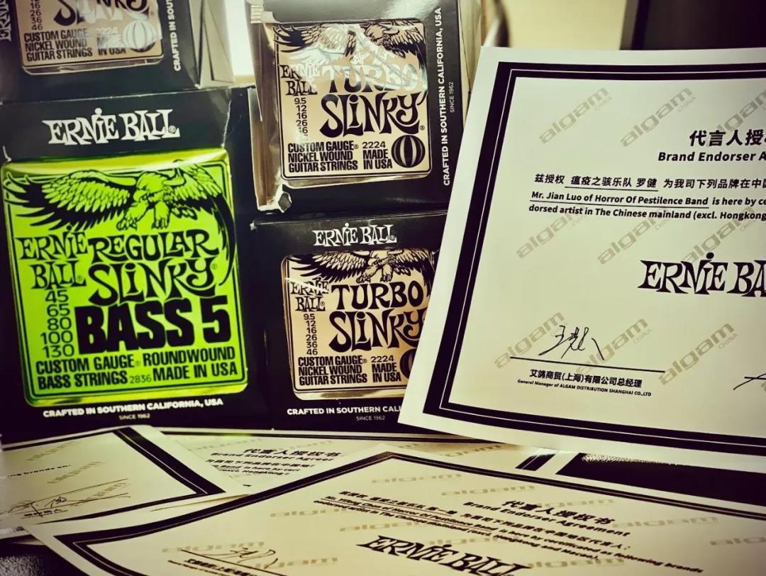 来自瘟疫之骸乐队的吉他手:林界俊、侯洋、陈一锋,贝斯手:罗健,正式签约ALGAM CHINA代言国内Ernie Ball琴弦。他们本次代言分别使用了:P02224、P02621电吉他弦,P02836电贝司弦。 ▼