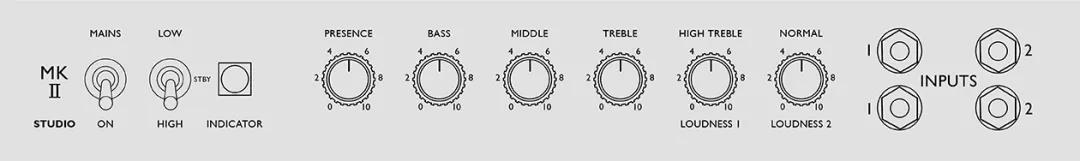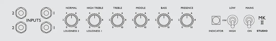经典系列 JMP 1959 SLP 的20W低功率版本箱头,拥有3个ECC83和2个EL34电子管,以及临场、高音、中音、低音控制, 十足的经典Marshall音色再现!