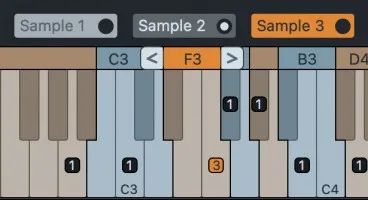 分配给同一个主键的多个样本通过放置在键盘区域上方的一排带编号的样本标签进行可视化。这些标签的作用类似于单选按钮控制器,用于选择要包含在样本仪器中的活动样本。