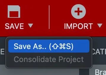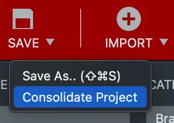 “保存”下拉菜单中的“合并项目”选项方便地收集所有正在使用的音频文件,并将它们复制到位于项目文件旁边的名为“媒体”的子文件夹中。如果所有使用的音频文件都已位于 Media 文件夹中,则禁用此选项。