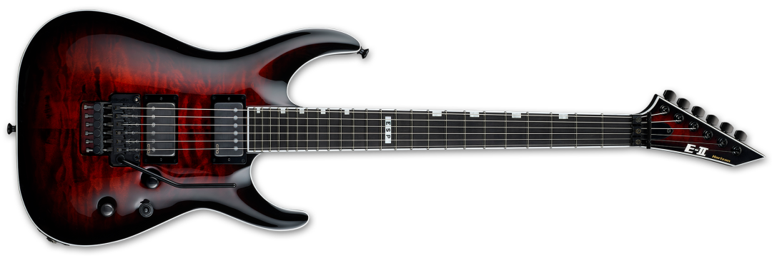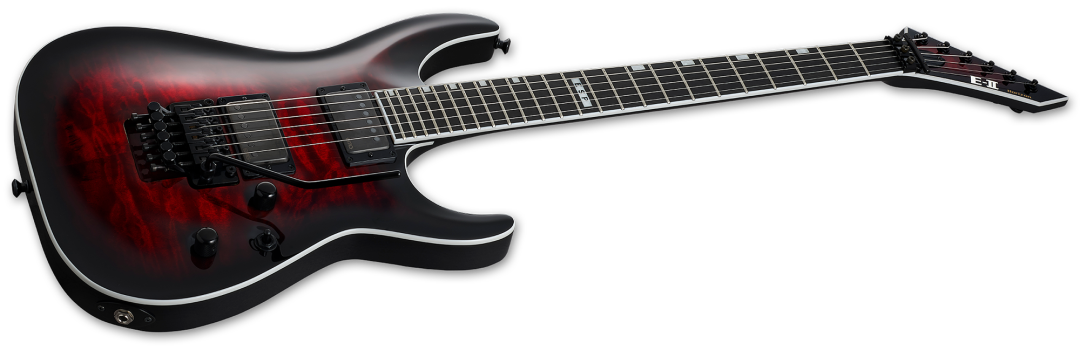 E-II Horizon FR-II 采用桃花心木琴身和拱形绗缝枫木面板的琴颈通体结构,以及带有 24 个超大品丝和偏置块镶嵌的乌木指板的三件式枫木琴颈,以及背面采用缎面处理,可提供超顺滑的可玩性。这把吉他提供高端组件,包括 Floyd Rose Original 琴桥、Gotoh 锁定调音器、和邓禄普锁定带按钮。