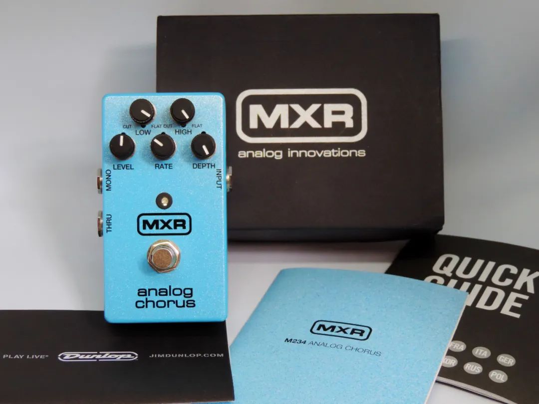MXR M234 这款全模拟电路效果器使用 bucket-brigade 电路来创建您想要的经典丰富的合唱音色。这是您无法使用数字电路获得的。速率、电平和深度控制以及用于切割高频和低频的旋钮可实现终极音调控制。