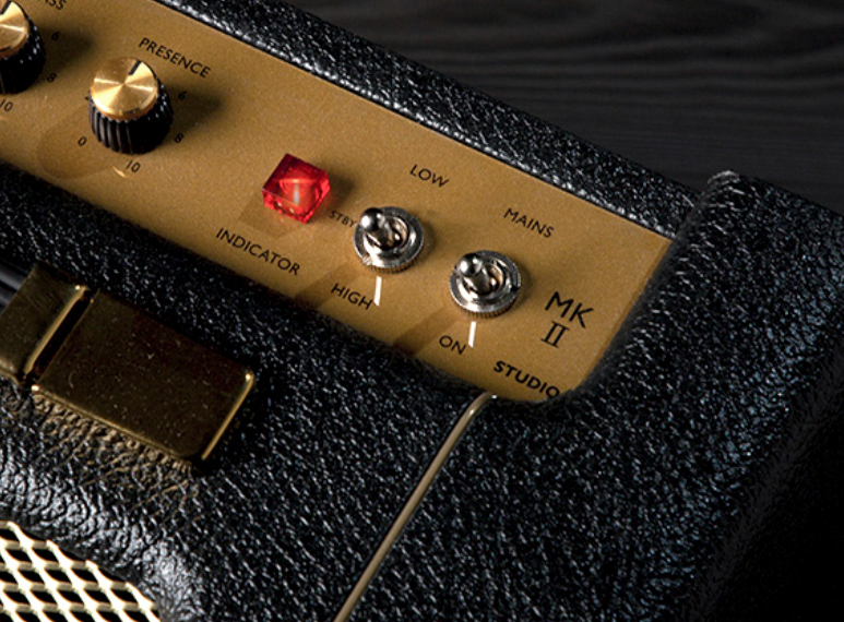 Studio Vintage组合在家中就像在工作室中一样,甚至可以让您在20W和5W输出功率之间切换。它也比100W的对应物更小,更轻。我们选择了10英寸Celestion V型扬声器,便于携带,而不会影响音调。