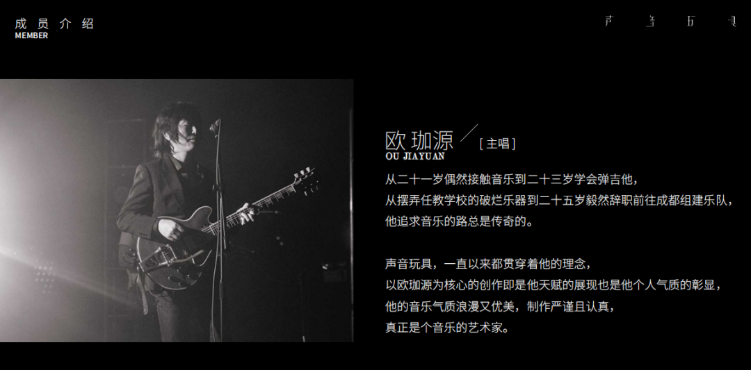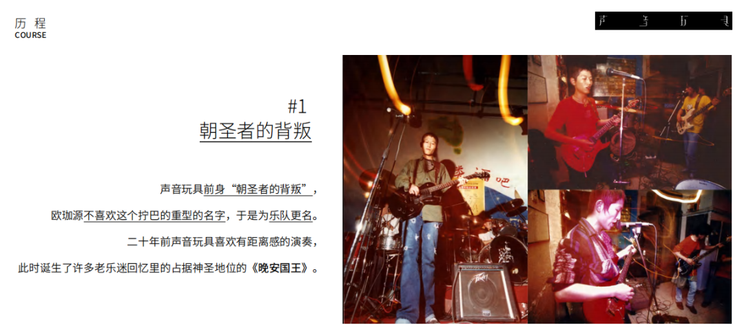 声音玩具由主唱吉他手及词曲作者欧珈源1999年创建千四川成都。 多元化的音乐元素使声音玩具的音乐总是难以被定义和归类,但潮湿、爱昧、优美这些成都的关键词也同样能被形容在声音玩具的音乐上。某种意义上,声音玩具乐队可以看作成都摇滚历史的开场。