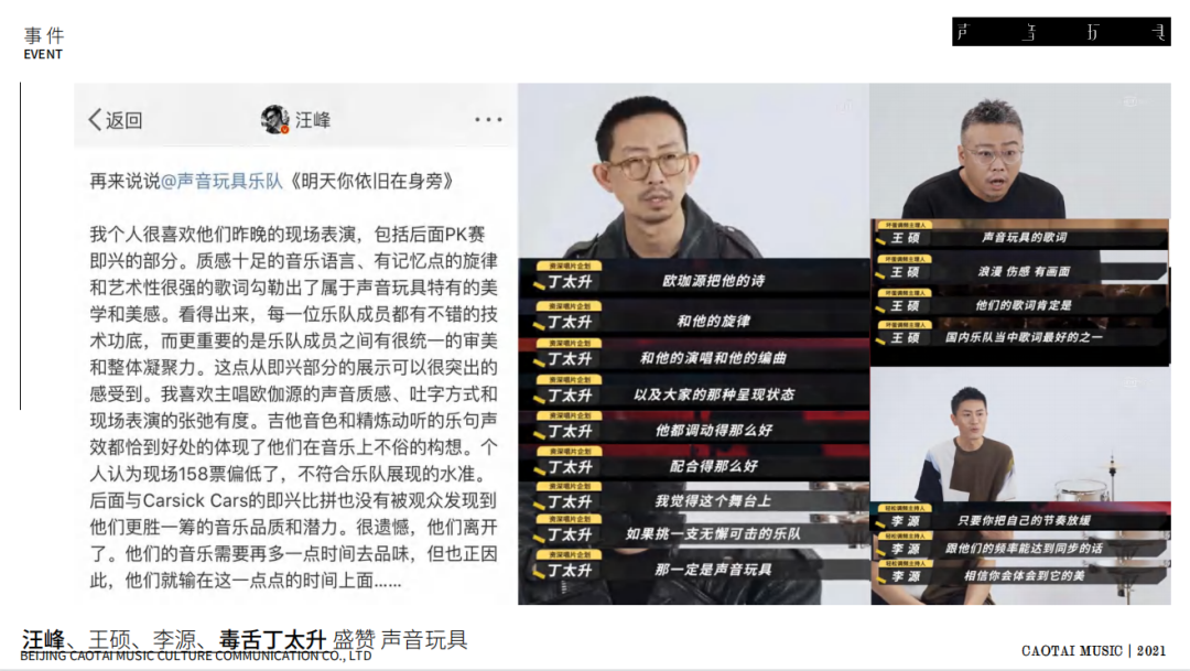 来自声音玩具乐队的主唱:欧珈源,吉他手:许屹、李哲,贝斯手:胡凯,正式签约ALGAM CHINA代言国内Ernie Ball琴弦。他们分别使用了:P02021、P02721电吉他弦,P02833、P02813电贝司弦。▼