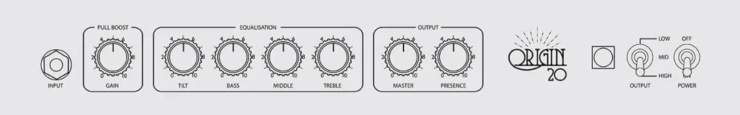 向经典致敬~回归原点!在Marshall传统的经典设计电路基础上搭载现代音色机能的ORIGIN系列!