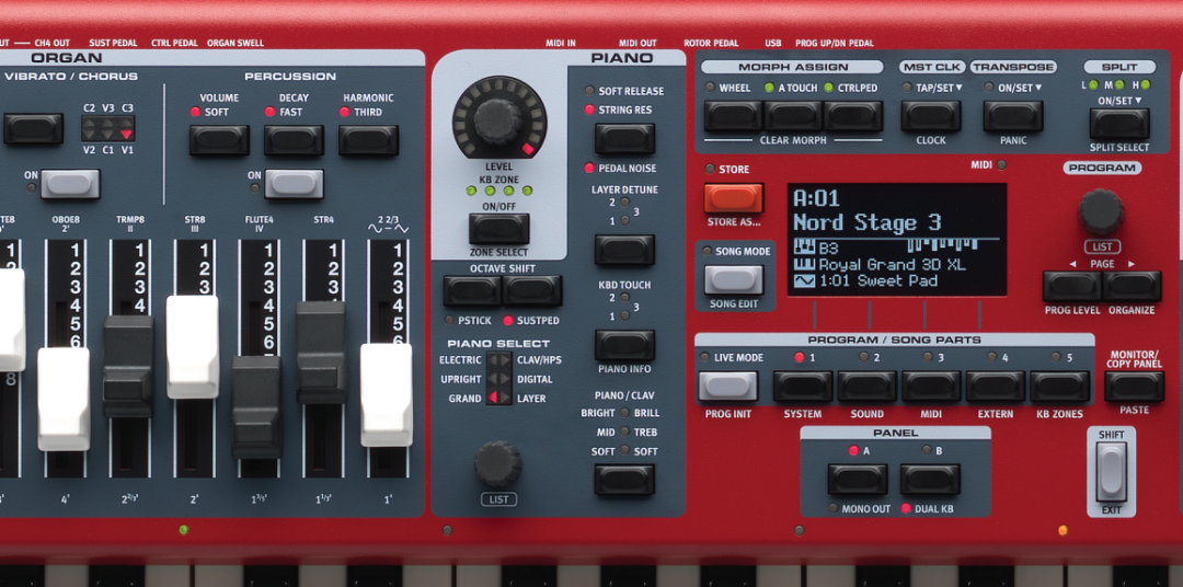 Nord Stage 3的出厂音色包含了从Nord钢琴音色库中所做的广泛选择,但是你也可以利用Nord音色管理软件来轻松地添加或替换其中的任意音色。我们独家的Nord钢琴音色库一直是在持续地进行更新,会不断地添加新的世界一流音色,并且全部都是免费提供。