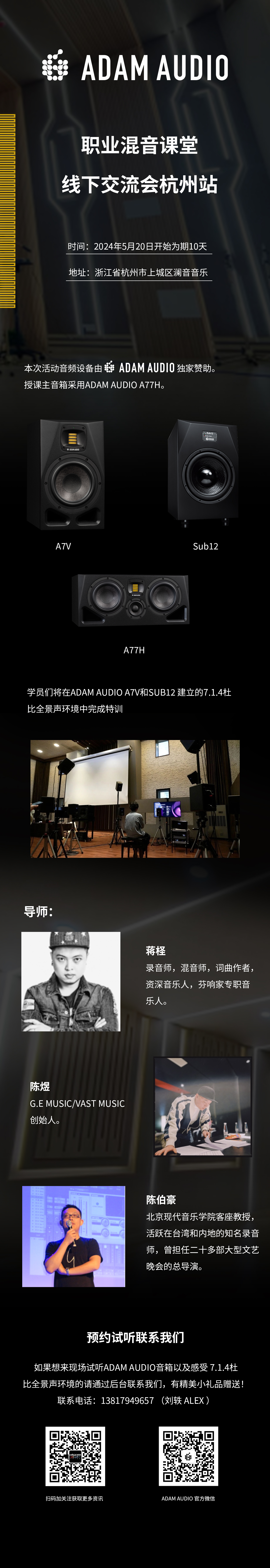 职业混音课堂线下交流会杭州站5.20即将开始 | ADAM Audio独家赞助音频设备!!